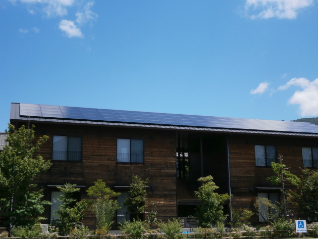 元小学校の校庭に立つ、木造2階建ての小さな宿泊施設です。